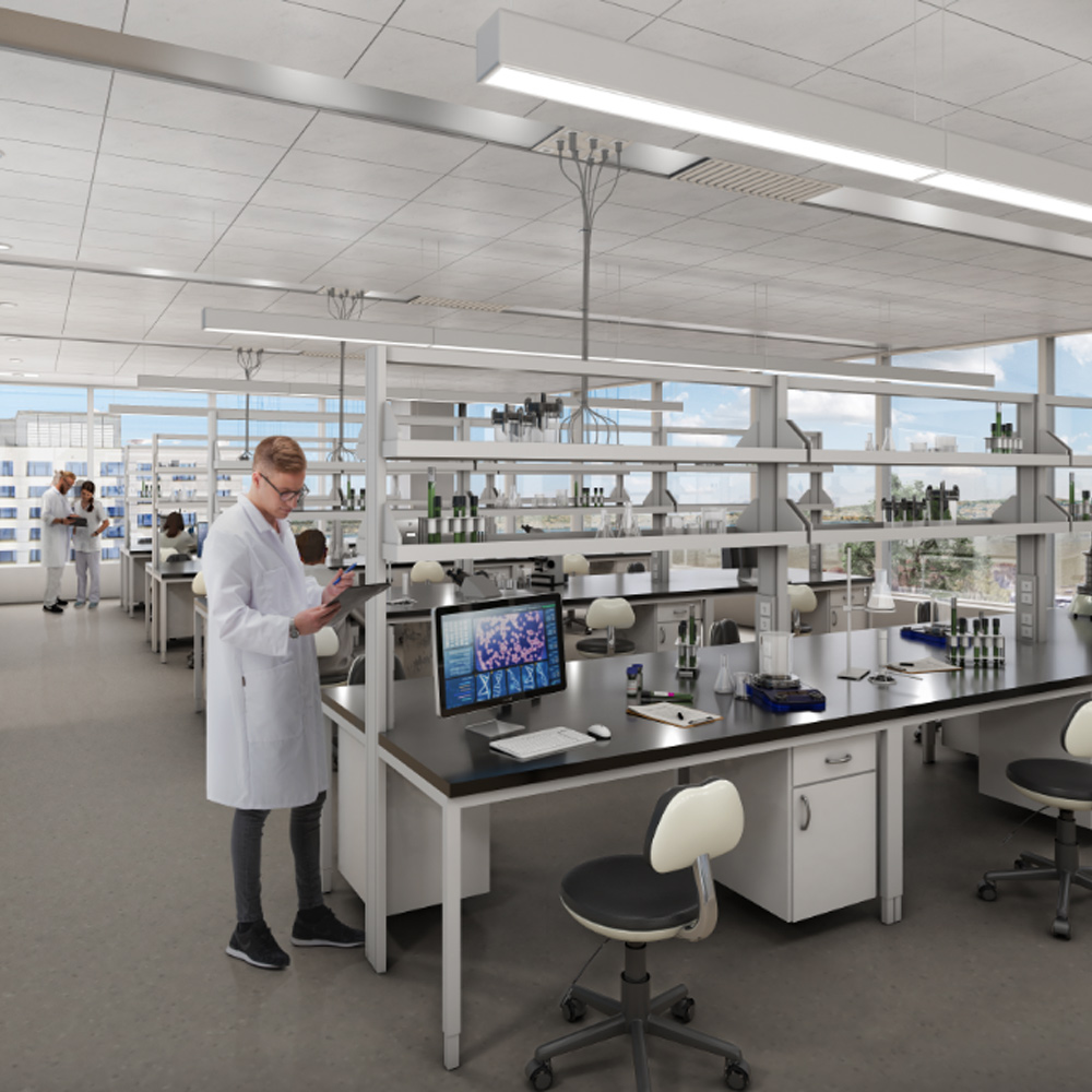 - Back-of-house infrastructure to support lab needs, including compressed air and vacuum to all lab benches